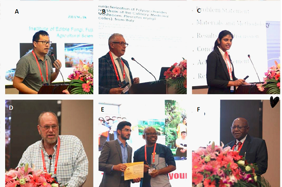 Some of the Presentations during the Conference (A: Dr. Di Zhang, B: Prof. Giuseppe Venturella, C: Ms. Rebecca JoysikaRoy Jayakumar, D: Dr. John Holliday, E: Mr. M toseef Zahid, F: Prof. Keto E.Mshigeni)